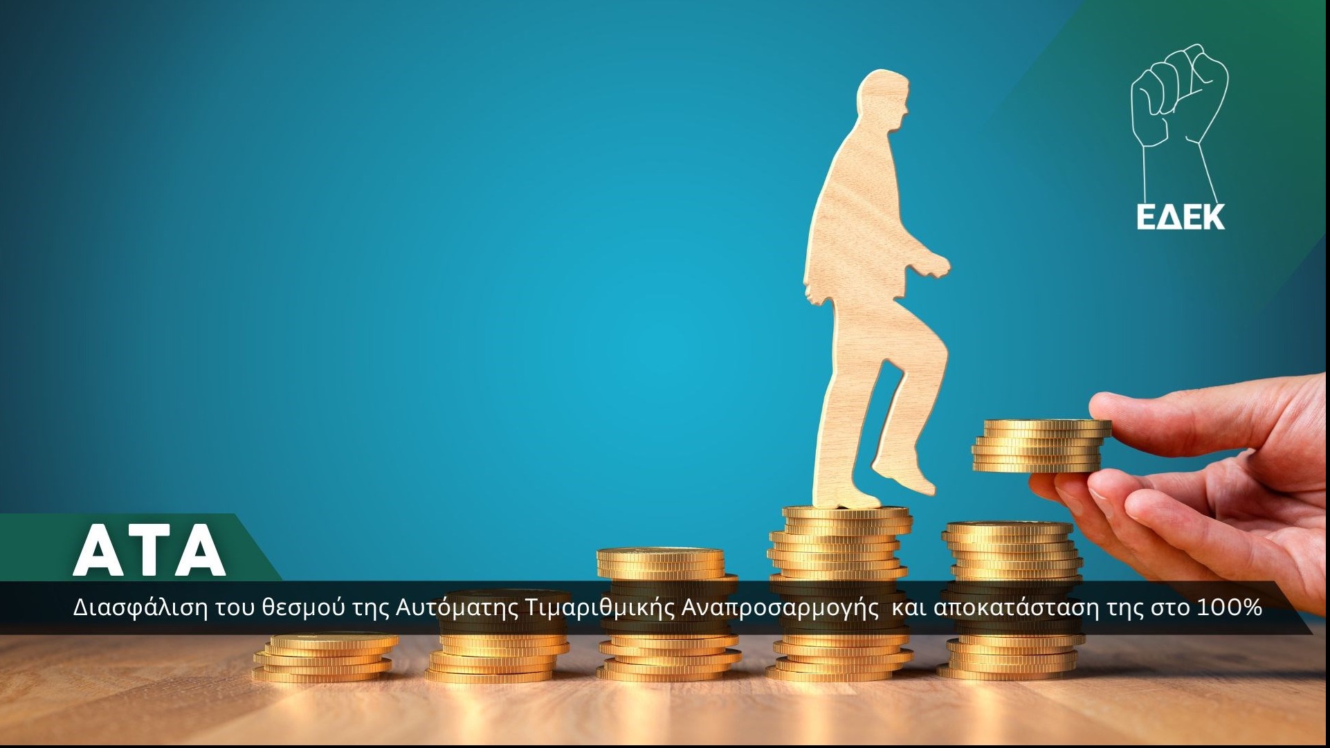 Επιπρόσθετα, η θέση της ΕΔΕΚ είναι πως, μετά τη θεσμική διασφάλιση της ΑΤΑ και την αποκατάσταση της στο 100%, πρέπει υπάρξει ρύθμιση, ώστε να καταβάλλεται με βάση τις μισθολογικές απολαβές.