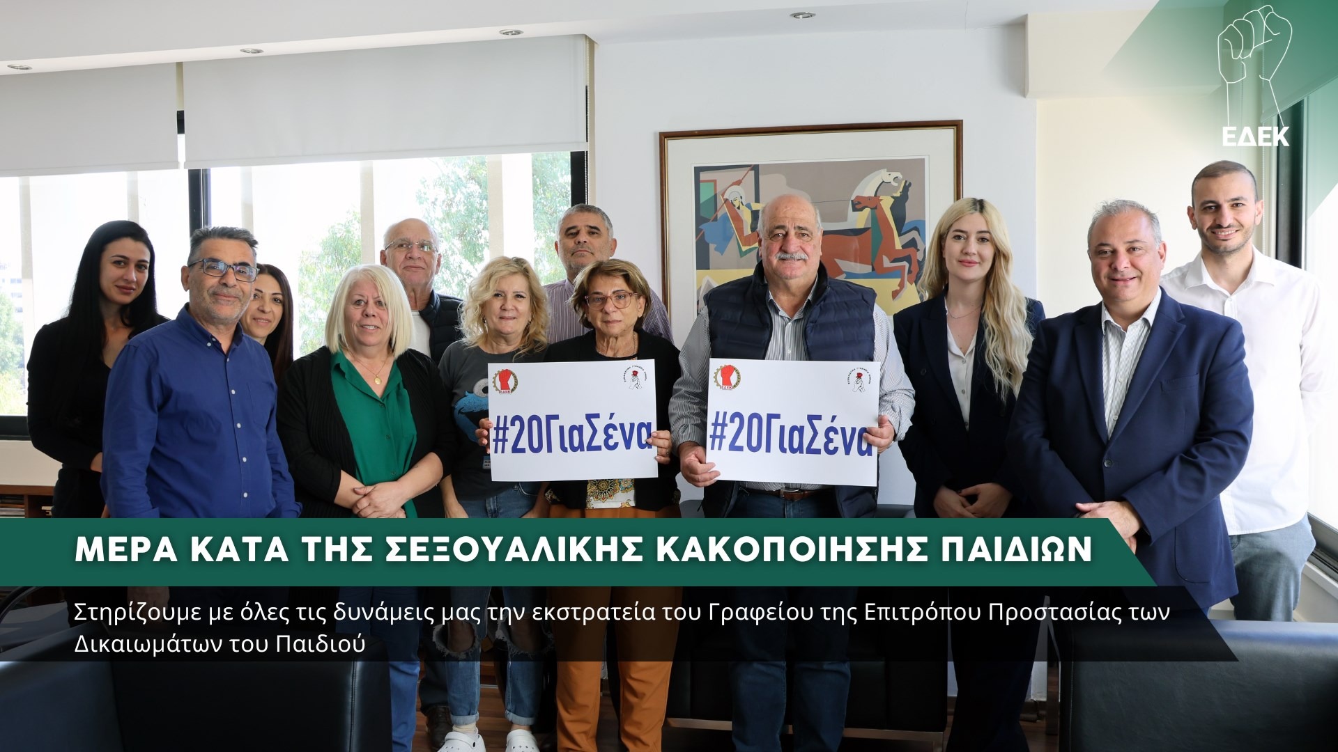 Η ΕΔΕΚ στηρίζει με όλες τις δυνάμεις της, την παγκύπρια εκστρατεία ενημέρωσης και δράσης με τίτλο #20ΓιαΣένα και όλες τις δράσεις του Γραφείου της Επιτρόπου Προστασίας των Δικαιωμάτων του Παιδιού.