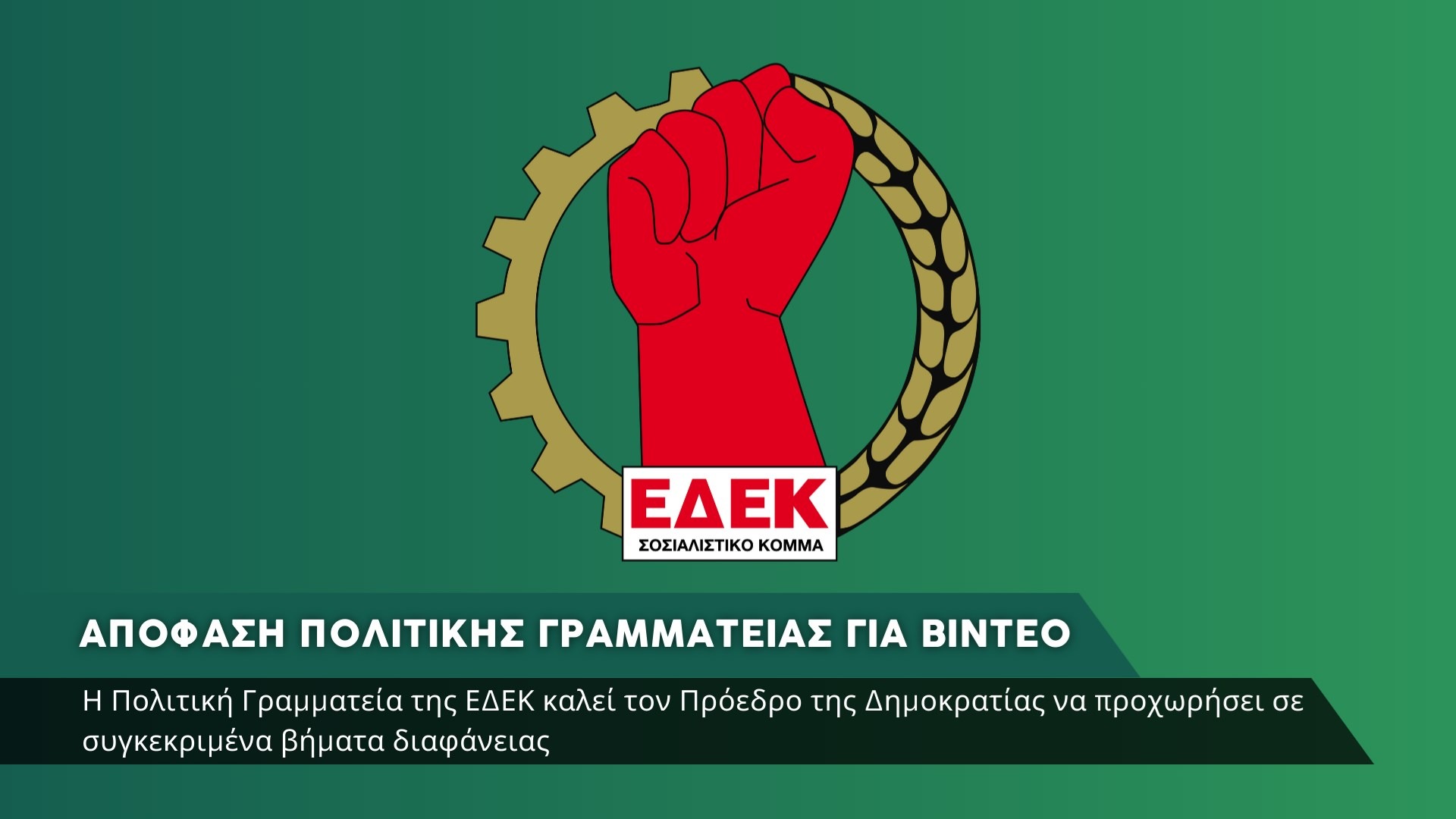 Η Πολιτική Γραμματεία της ΕΔΕΚ, σε σημερινή συνεδρίαση της, αποφάσισε τα εξής: