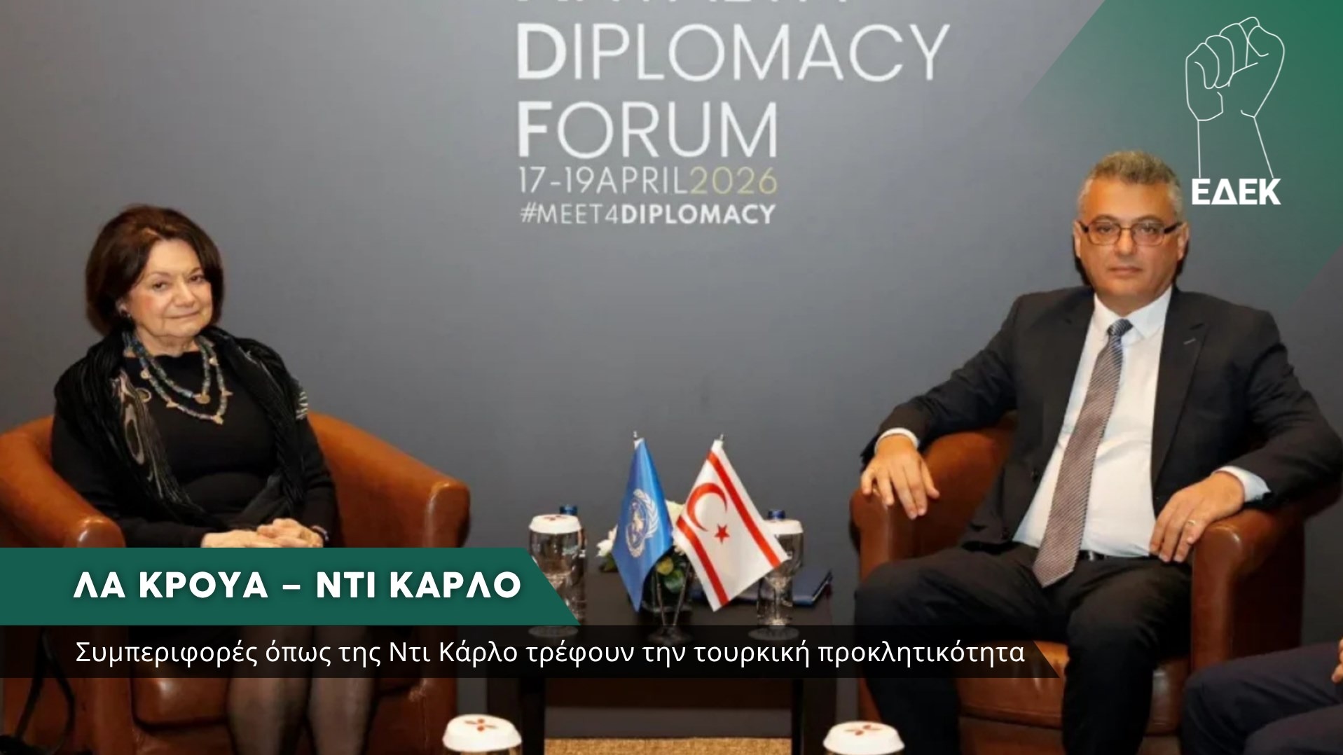 Και ενώ ο Αναπληρωτής ΓΓ του ΟΗΕ κ. Λακρουά σπεύδει στην Κύπρο ανησυχώντας για την ένταση στην ουδέτερη ζώνη, η συνάδελφος του, η κ. Ντι Κάρλο δίνει υπόσταση σ’ αυτούς που προκαλούν την ένταση, επιτρέποντας να κυματίζει δίπλα από τη σημαία του ΟΗΕ, η σημαία του παράνομου μορφώματος των κατεχομένων.