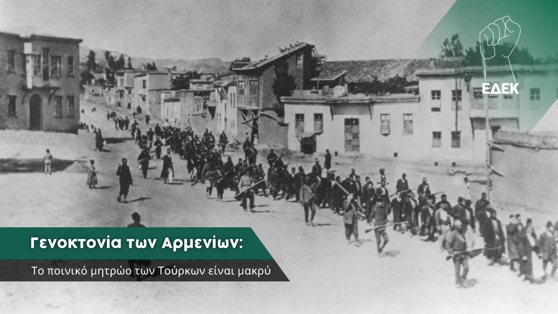 Η ΕΔΕΚ, στο πλευρό των συμπατριωτών μας Αρμενίων της Κύπρου, του κράτους της Αρμενίας και του Αρμενικού Έθνους, τιμά τη μνήμη του 1,5 εκατομμυρίου Αρμενίων, που δολοφονήθηκαν με θηριωδία και βαρβαρότητα, από τους Νεότουρκους, στο πλαίσιο της εθνοκάθαρσης που ξεκίνησε στις 24 Απριλίου 1915 με τη δολοφονία 250 διανοούμενων Αρμενίων και συνεχίστηκε ως απροκάλυπτα προμελετημένο έγκλημα κατά ενός ολάκερου έθνους.