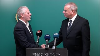 Εγώ για ακόμα μια φορά φίλε Νίκο θα ήθελα να σε συγχαρώ για τη μέχρι σήμερα συνεργασία μας, για το εξαιρετικό έργο το οποίο επιτέλεσες σε διάφορους τομείς αλλά κυρίως στο θέμα του μεταναστευτικού. Αυτή η συνεργασία μας σας διαβεβαιώνω ότι θέλω να συνεχίσει προς όφελος της πατρίδας μας».