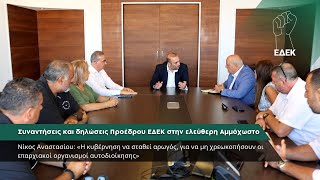 Ο Πρόεδρος της ΕΔΕΚ, Νίκος Αναστασίου προέβη σε δηλώσεις μετά τη συνάντηση του με τον Πρόεδρο του ΕΟΑ Αμμοχώστου.