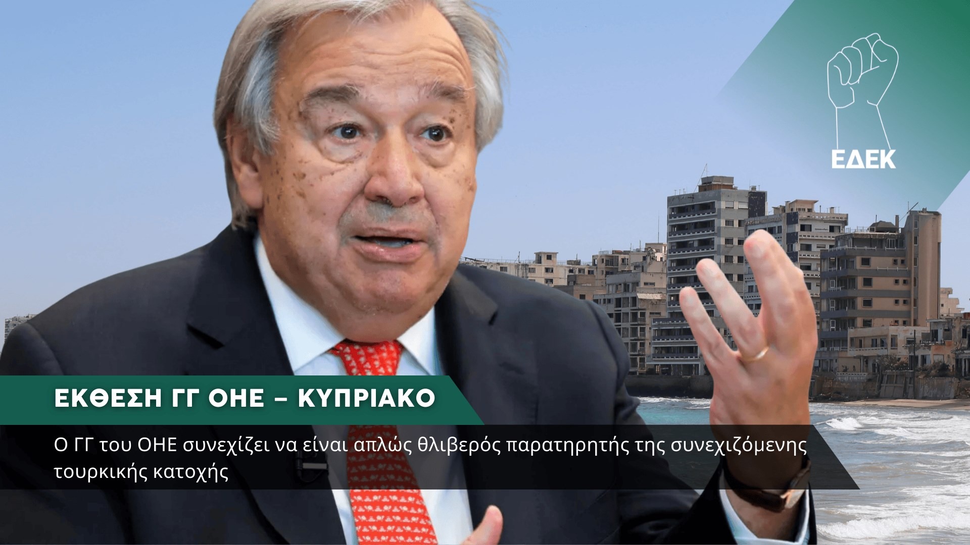 Ο ΓΓ του ΟΗΕ λειτουργεί για μια ακόμα φορά, όπως τα μέλη της UNFICYP, τα οποία είναι απλώς παρατηρητές στις παραβιάσεις της ουδέτερης ζώνης και στις απειλητικές διαθέσεις των Τούρκων κατά των Ελληνοκυπρίων γεωργών, στη Δένεια, στο Μάμμαρι και στην Αυλώνα.
